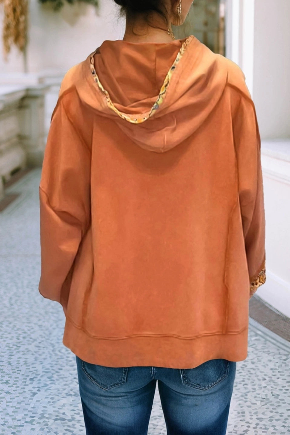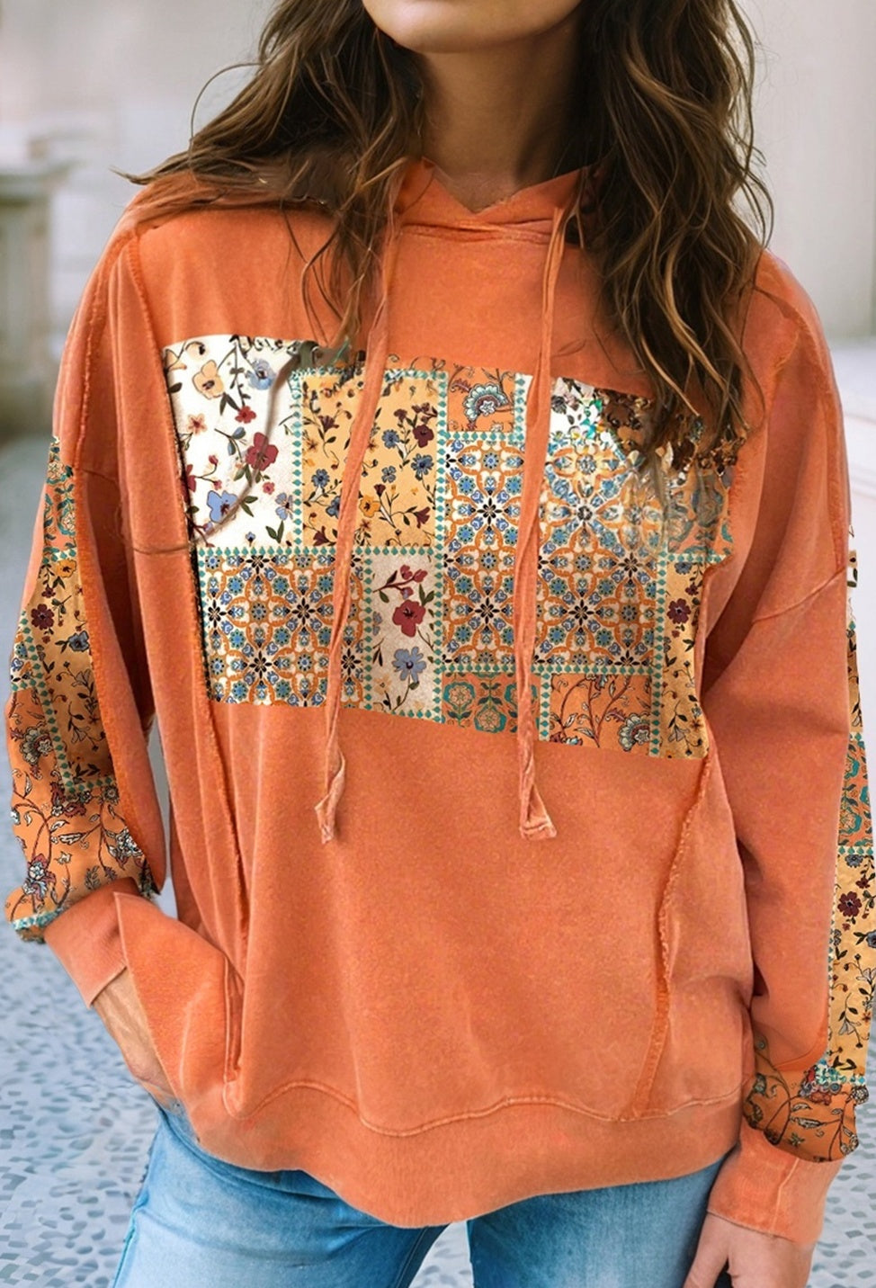 Add a pop personality to your casual wardrobe with our Gabriela top featuring a hoodie with drawstring.  A vibrant mix of florals and geometric prints, this comfy hoodie blends laidback comfort with eye-catching style.  The soft fabric and relax fit, makes it perfect for lounging, weekend outings, or layering on a cool day pair with jeans or leggings for a great effortless chic look.